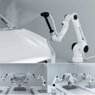 HANS Elfin Cobot Automotive Spraying Solution jest systemem robotowym opartym na współpracy zaprojektowanym do zastosowań w zakresie malowania samochodów i powłok powierzchniowych.,Elfin Cobot nadaje się do malowania nadwozi samochodów, opryskiwania części samochodowych,i elastycznych linii produkcyjnych, które wymagają stałej jakości powłoki i szybkiego wdrożenia.